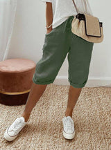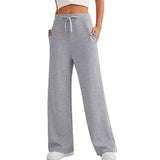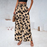 Celana Panjang Longgar Musim Panas Wanita Pinggang Tinggi Ruched Kaki Lebar Khaki / XLLOVEMI