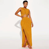 Gaun Maxi Ruched Rajutan - Pakaian Pantai Musim Panas Tanpa LenganLOVEMI