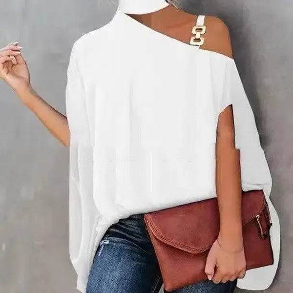 Jubah Bahu Selempang Tanpa Tali Garis Leher Tinggi Wanita