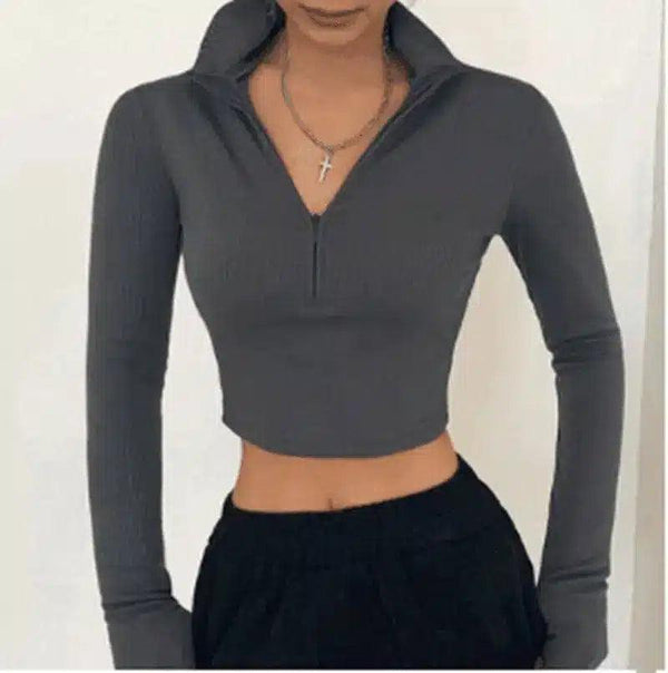 Hoodie Pangkas Ritsleting Wanita Lengan Panjang