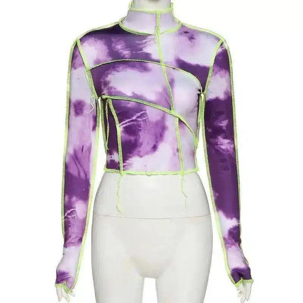 Atasan Pangkas Lengan Panjang Leher Tinggi Berikat Depan