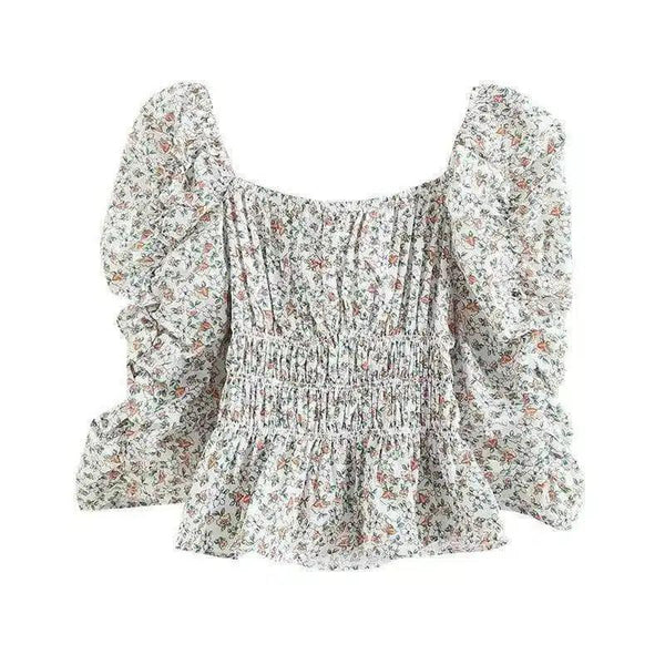 Atasan Lengan Puff Bergambar Bunga Wanita