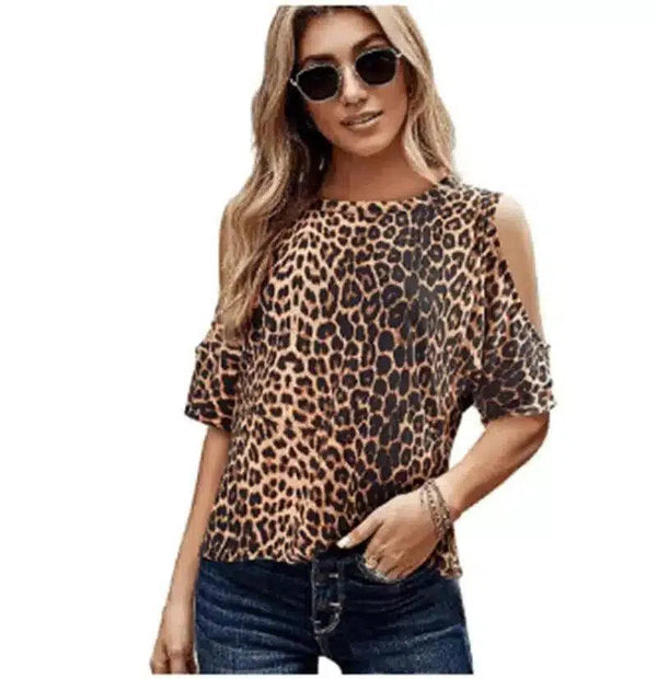 Atasan Bahu Dingin Motif Macan Tutul Wanita