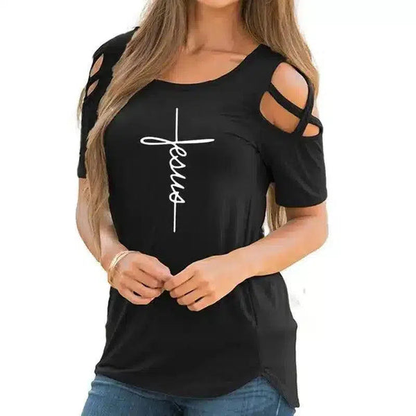 Kaos Santai Bahu Potong-Potong Wanita