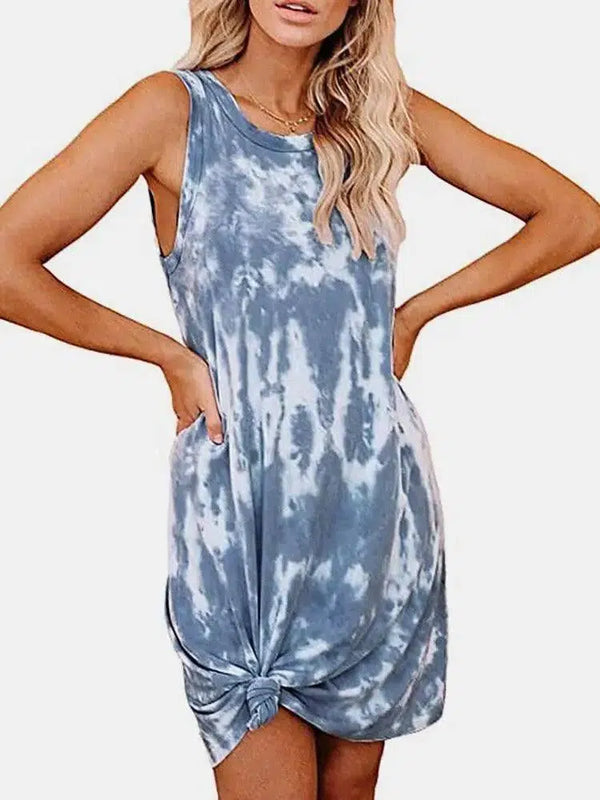 Atasan Tank Top Longgar Motif Ikat Pinggang Wanita Eropa dan Amerika