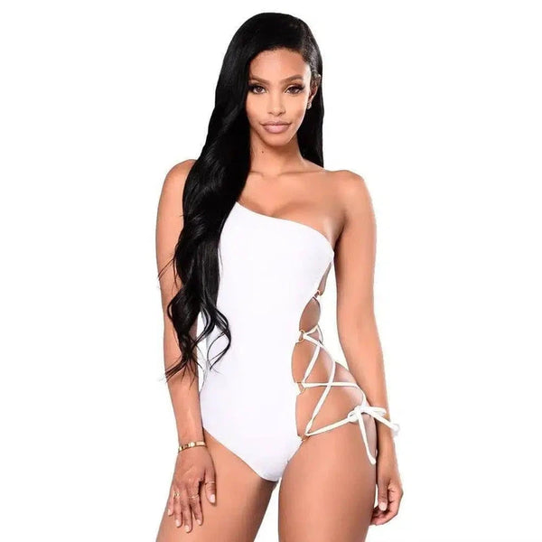 Baju renang bikini satu bahu dengan tali silang berbentuk lingkaran