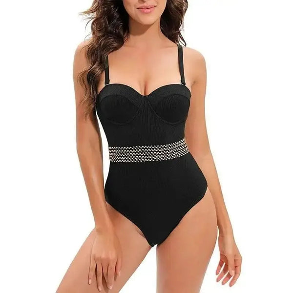 Deskripsi Produk: Bikini Baju Renang Strip Pit Hitam Gaya Ins