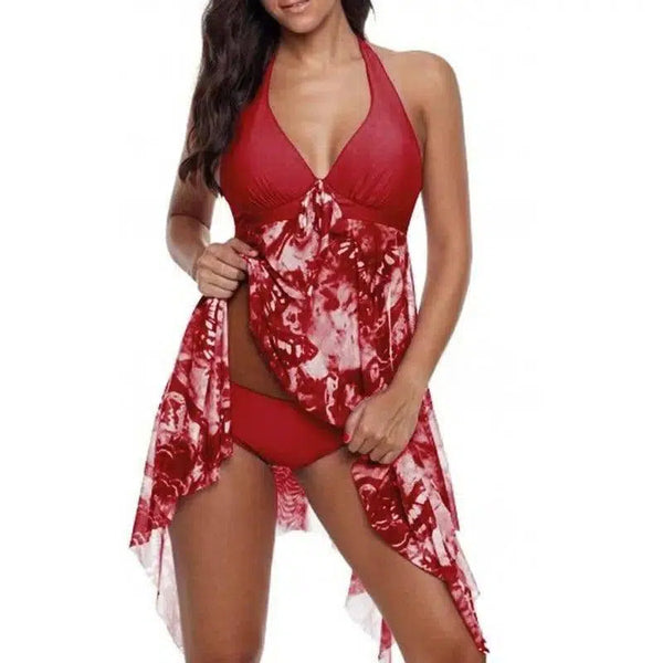 Baju Renang Bikini Belahan Hem Tak Beraturan Berbunga-bunga