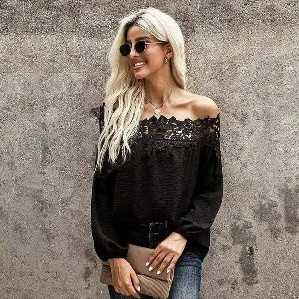 Blus Wanita Berpotongan Renda di Bagian Bahu