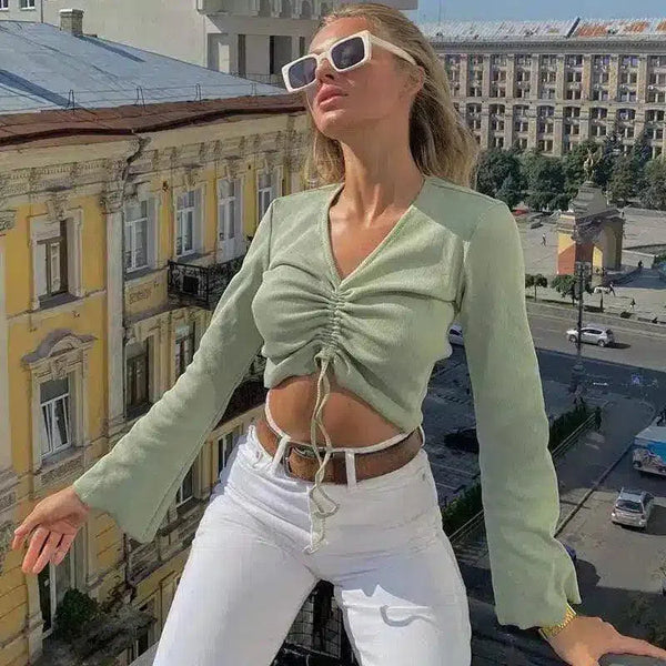 - Rona Hijau Sage Serbaguna: Dibalut dengan warna hijau sage yang trendi, atasan ini merupakan tambahan serbaguna untuk lemari pakaian Anda, mudah dipadukan dengan berbagai bawahan.