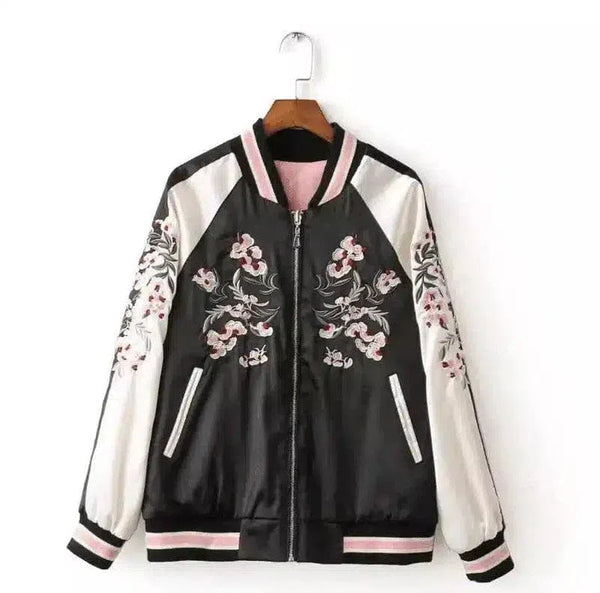 Jaket Bomber Bordir Bunga dengan Penutup Ritsleting