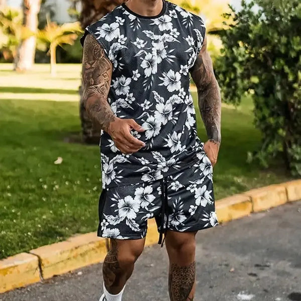 Fashion Pria Celana Cepat Kering Kemeja Pantai Kemeja Dua Potong Set