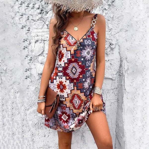 Gaun Selempang Cetak Kasual Fashion Wanita