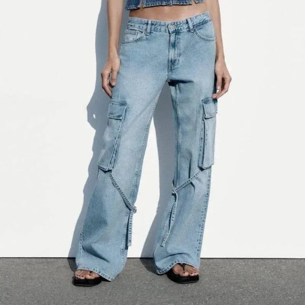 Deskripsi Produk: Aksesori Tali Pengikat Longgar Busana Wanita Kargo Pinggang Tengah