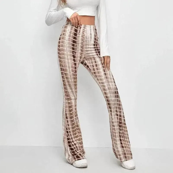 Celana Bootleg Motif Retro Pinggul Celana Santai