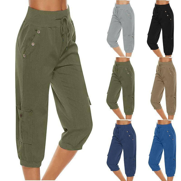 Celana Cropped Wanita Celana Katun Linen Kargo Saku Saku Saku Saku Sapphire Blue / 2XL