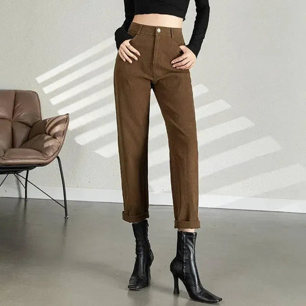 Celana Tabung Lobak Lurus Sembilan Menit Berpinggang Tinggi Wanita