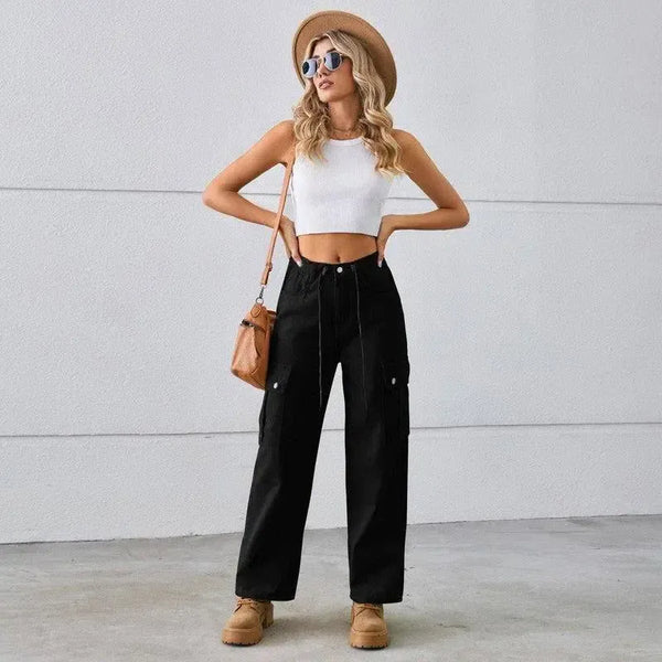 Deskripsi Produk: Denim Serut yang Dapat Disesuaikan Dicuci Overall Wanita Kasual
