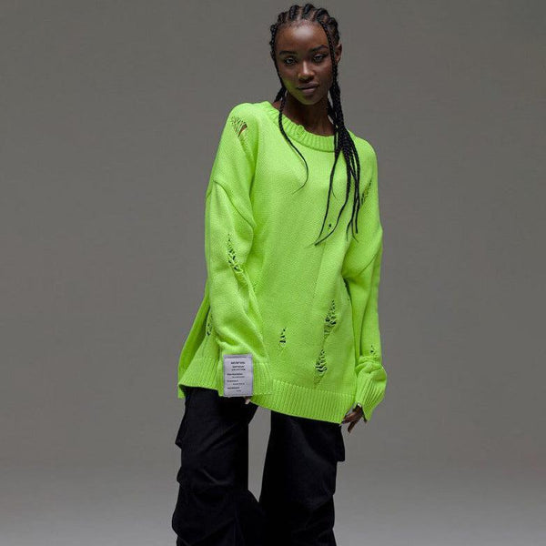 Stay effortlessly stylish with this European & American Leisure Ripped Round Neck Sweater, designed for a chic and edgy look. Featuring distressed/ripped details, a classic round neckline, and a relaxed fit, this sweater brings a perfect blend of casual street style and cozy comfort. Made from soft knit fabric, it keeps you warm during autumn and winter, making it a must-have for fashion-forward women. Whether you're going for an urban streetwear vibe or a laid-back weekend look, this trendy ripped sweater pairs perfectly with jeans, leggings, or skirts.