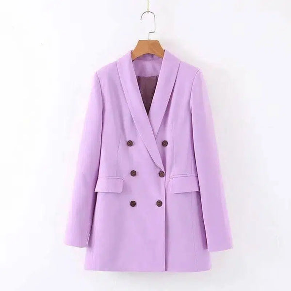 Fashion Temperamen Angin Jaket Setelan Jas Berdada Ganda Wanita