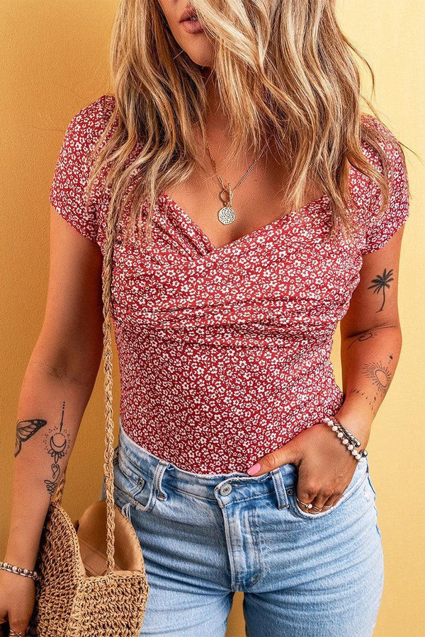 Floral Surplice Short Sleeve Bodysuit