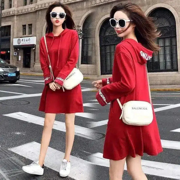Gaun Kasual Berkerudung dengan Lengan Panjang