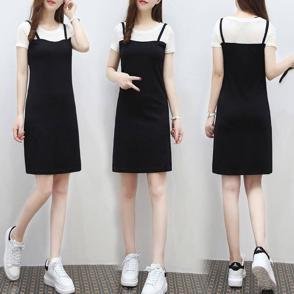 Gaun suspender dua potong lengan pendek pertengahan panjang palsu musim panas