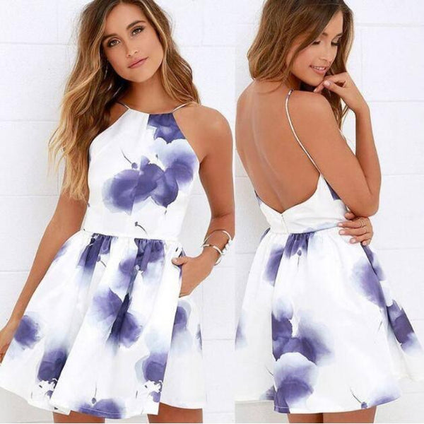 Gaun Mini Pinggang Pinggang Boho Sling Backless