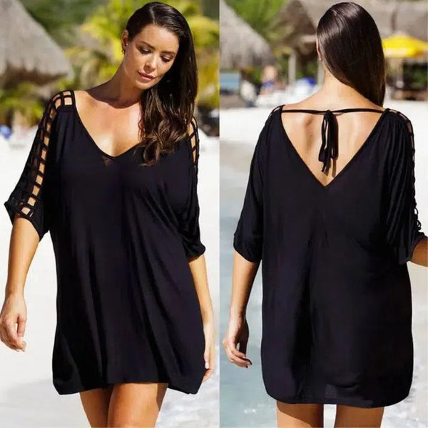 Musim Panas Plus Ukuran M hingga 3XL Menutupi Pakaian Renang Wanita Blus Pantai Wanita Bikini Pakaian Pantai Pakaian Hitam