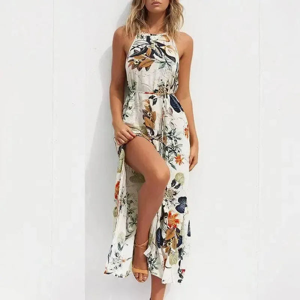 Gaun pantai panjang berbahan katun selempang Eropa dan Amerika