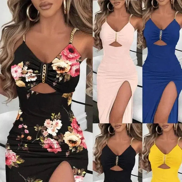 Gaun Selempang Rantai Tali Bahu Belah Wanita