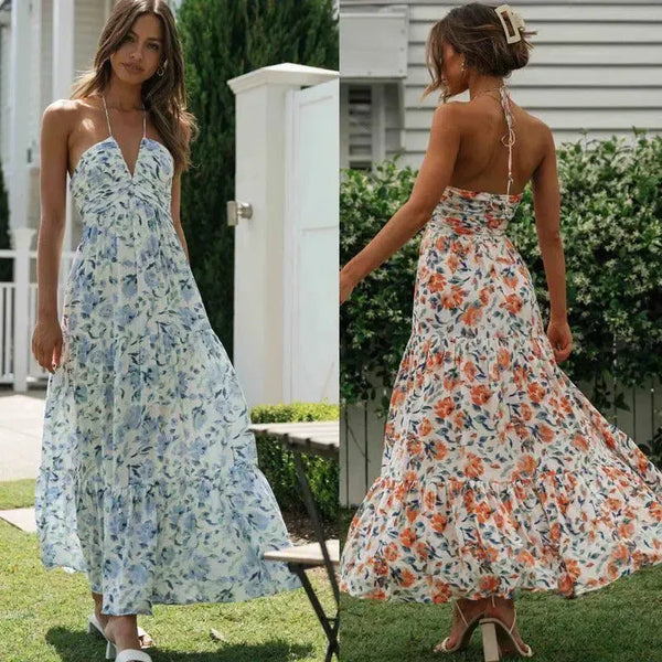 Gaun Patchwork Panjang Tanpa Lengan Leher Sifon V-neck Tanpa Lengan
