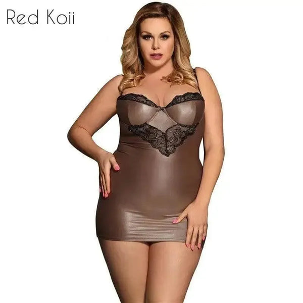 Gaun Tidur Lingerie Kulit Imitasi Ukuran Plus