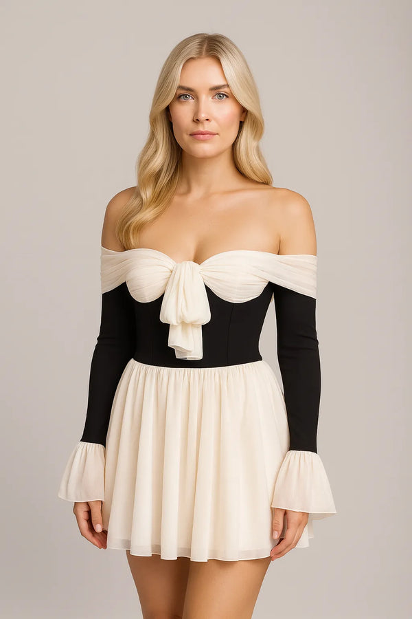 Gaun Wanita dengan Warna Serasi Off-shoulder