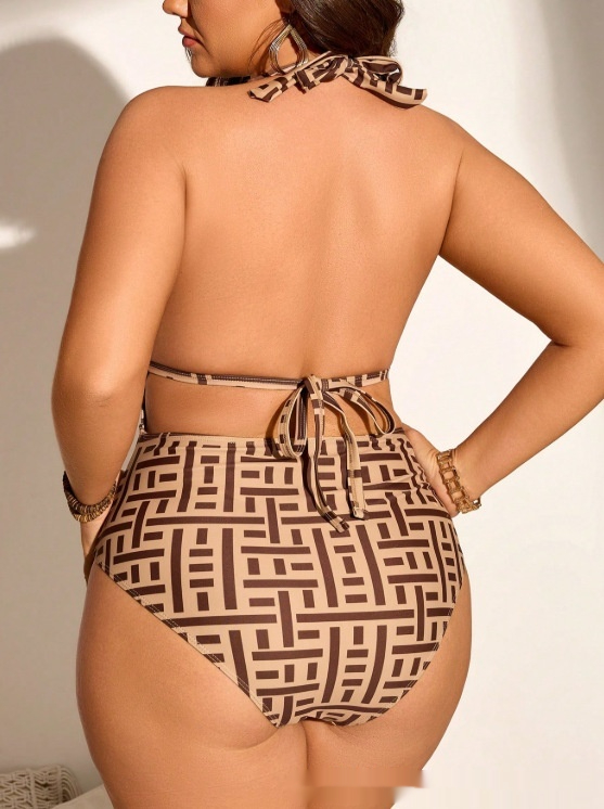 Geometric-patterned Waist-cinching Backless Figure-flattering Jumpsuit