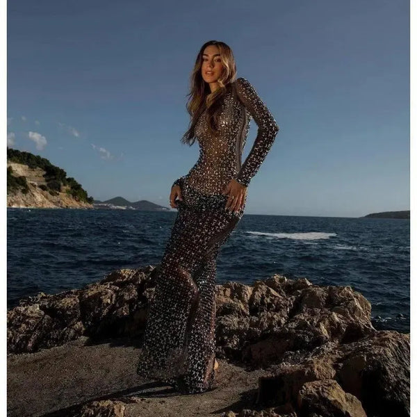 Deskripsi Produk: Gaun Maxi Lengan Panjang Gemerlapan