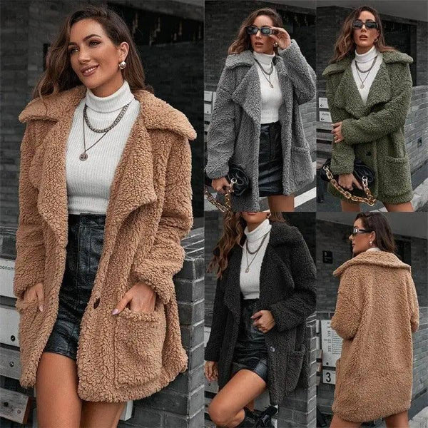 Jaket Bulu Gelembung Berdada Tunggal Kerah Longgar Bulu Domba
