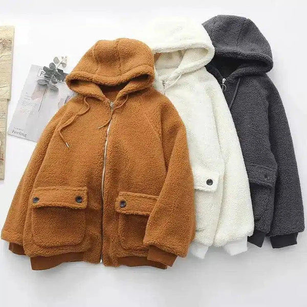 Jaket Bulu Domba Hangat Berkerudung Longgar