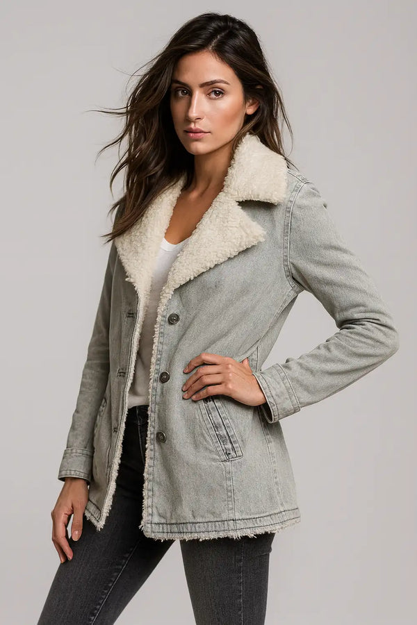 - Jenis pakaian: Jaket Denim dengan Lapisan Sherpa