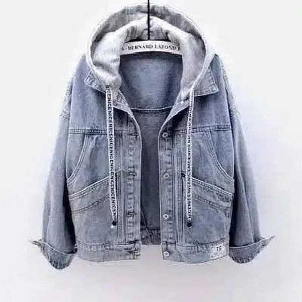 - Jenis Pakaian: Jaket Denim dengan Tudung