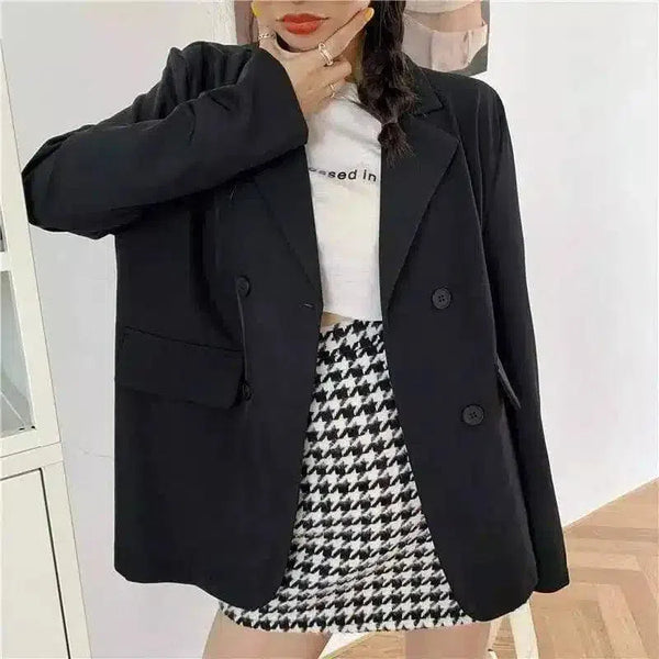 Set Blazer Kasual Wanita dan Rok Houndstooth
