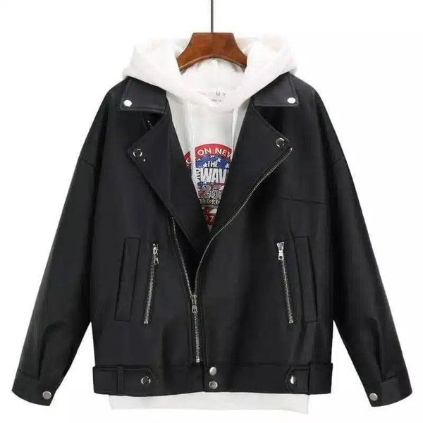 Jaket Biker Berlapis Bulu Palsu dengan Ritsleting