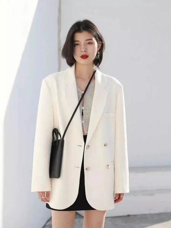 Blazer Double-Breasted Wanita dengan Tas Bahu