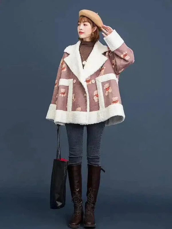 Mantel Teddy Berlapis Bulu Musim Dingin dengan Saku
