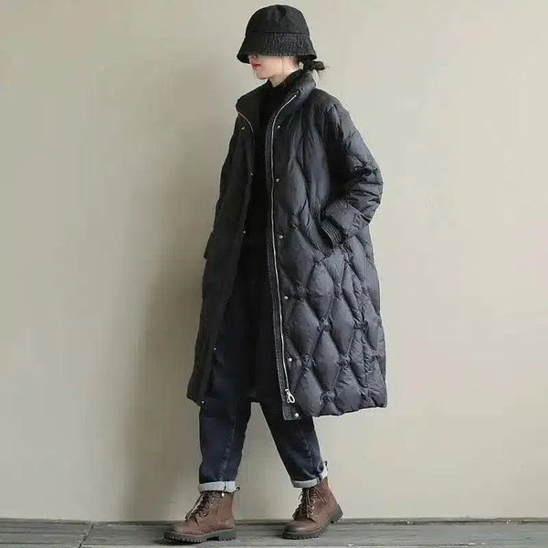 Mantel Musim Dingin Panjang Berlapis dengan Tudung