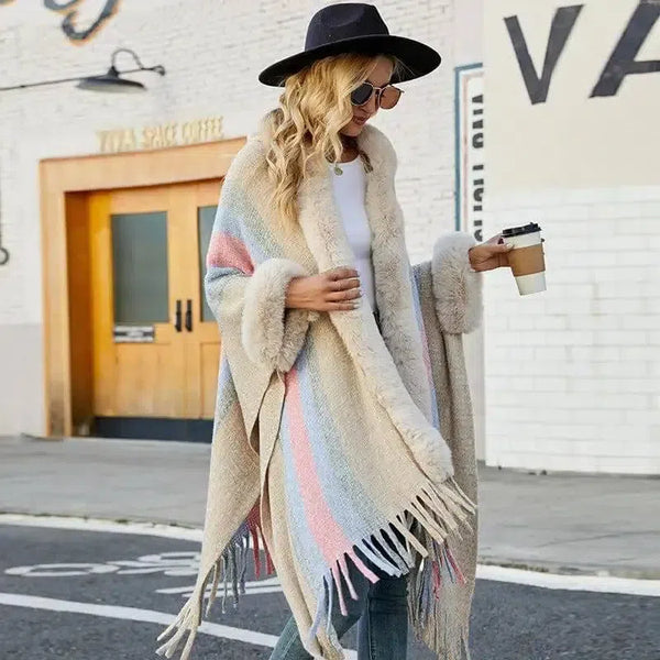 Deskripsi Produk: Jubah Berkerudung Wanita Musim Gugur dan Musim Dingin Bergaris