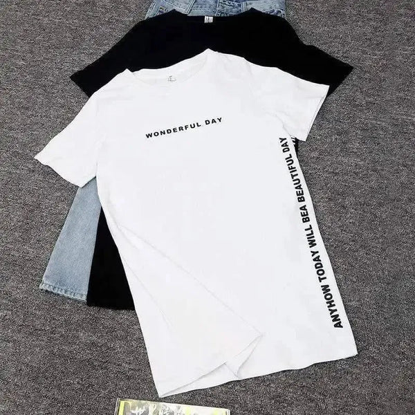 - Pesan Inspiratif: "WONDERFUL DAY" yang tercetak di bagian dada menambah kesan positif, sementara tulisan yang lebih panjang di sepanjang jahitan samping memberikan elemen desain yang tak terduga.