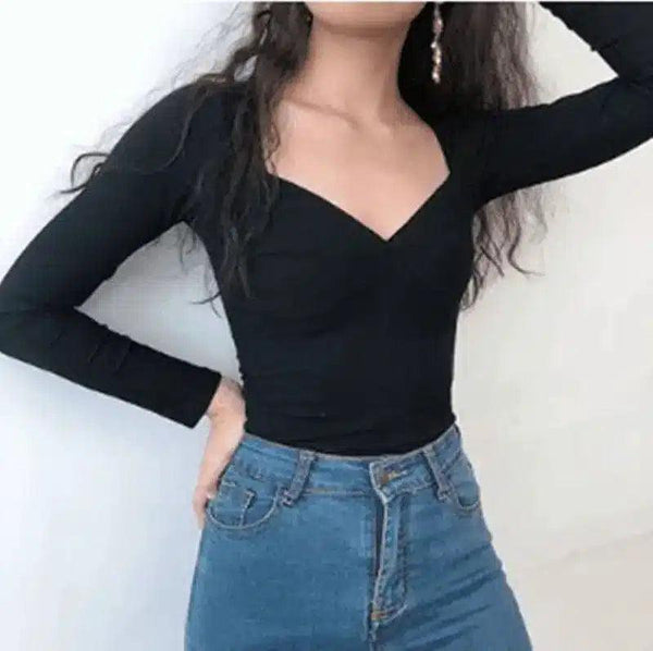 Atasan V-Neck Lengan Panjang Wanita