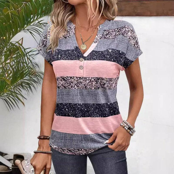 Kerah V Bergaris Lengan Pendek Musim Panas Eropa dan Amerika 3D