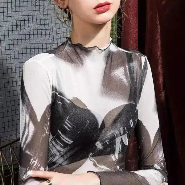 Elemen Berani: Pola abstrak yang berani dipasangkan dengan bahan tipis menciptakan elemen yang edgy namun berkelas, membuat atasan ini serbaguna untuk dipakai siang dan malam hari.